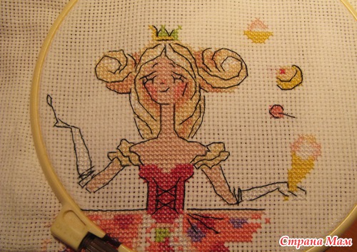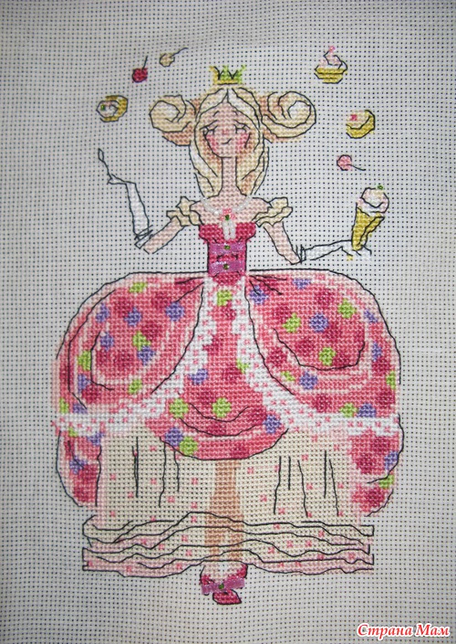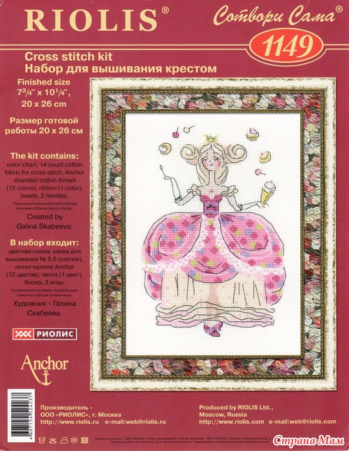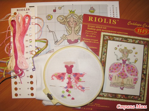 В декабре 2011 года купила в Екатеринбурге набор от "Риолис" Принцесса Драже. Так понравилась мне на обложке эта милашка со сладостями.