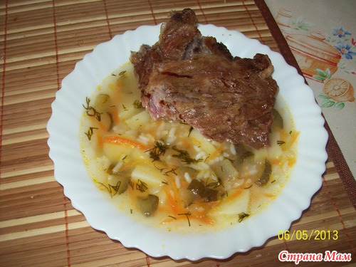 . Варила рассольник с копчеными ребрышками..копченые ребрышки