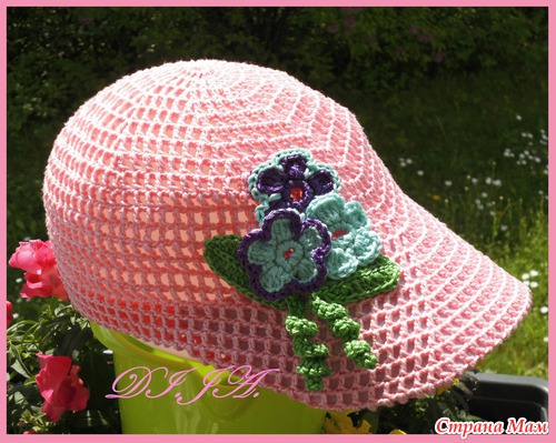 Мой первый опыт... Кепочка "Розовые облака".