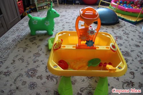 и поледнее - это столик для игр с водой и песком. очень оправдал мои ожидания! прямо таки отличный! да к тому же он помещается в нашей ванне! вот малому будет развлекаловка)))
