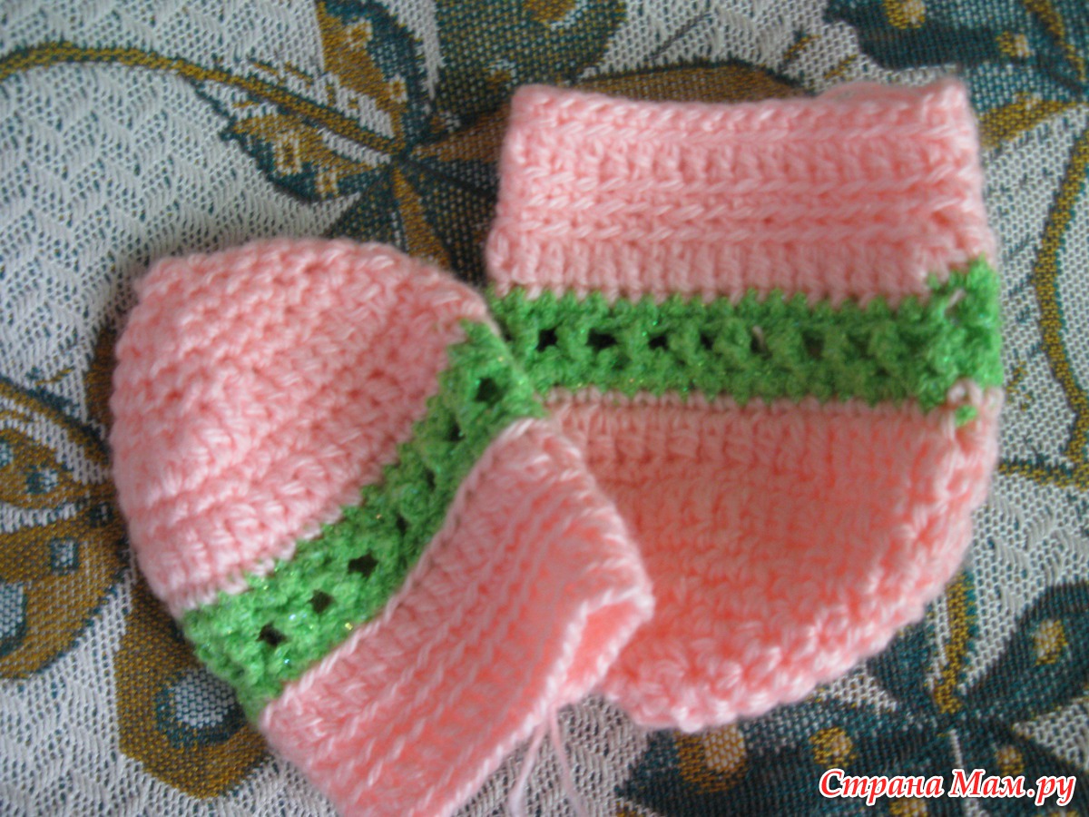 Вот связала доче шапочку, руковички и вяжу шарфик.