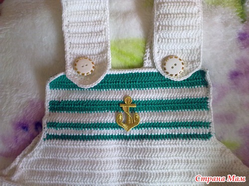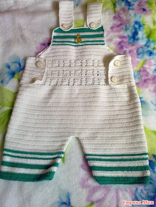 Вот мой первый заказ, попросили связать детский летний комбинезон в морском стиле, только чтобы синего не было. Вот что вышло, девочки посоветуйте пожалуйста подходят ли такие пуговички и якорь или нет, они еще не пришиты и якорь тоже,