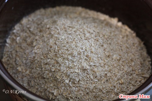 Овсяные хлопья слегка размолоть. Получается вот такая крупка, но можно этого не делать, а брать обычные цельные хлопья.