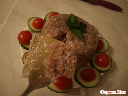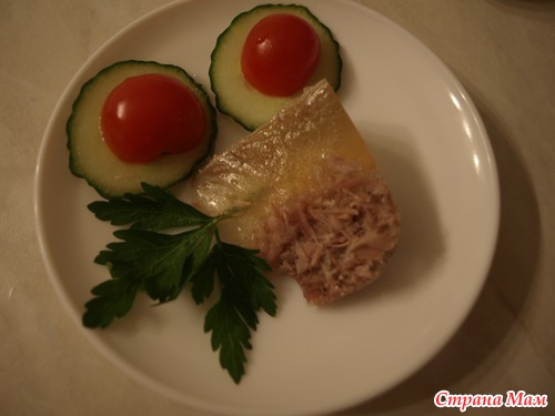 Мясо вытаскиваю, даю слегка остыть и отделяю от костей и шкуры. Мясо режу мелкими кусочками.