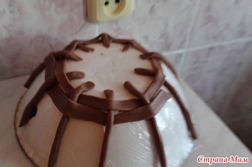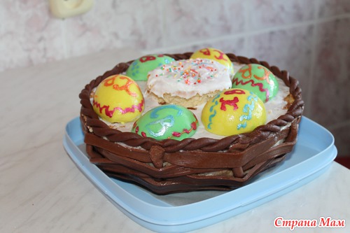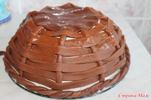 Делала корзину отдельно, о чём потом пожалела, наверное надо было делать сразу на торте.