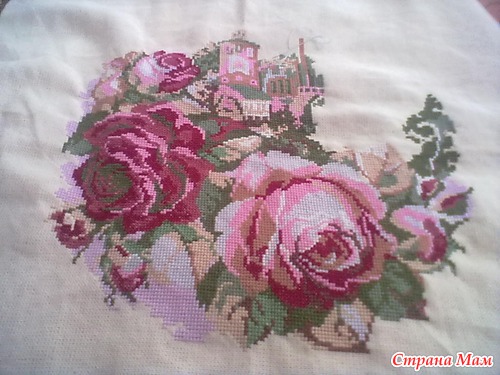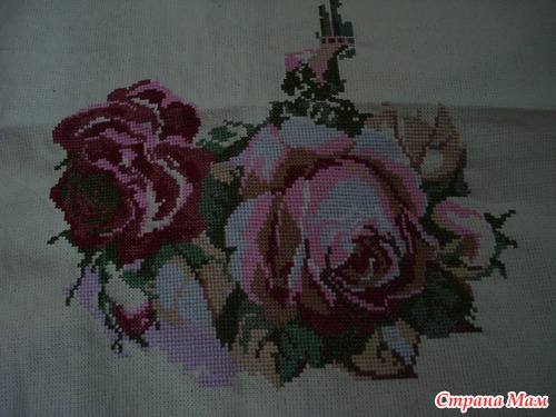 Эту картину я увидела в журнале "Крестьянка", там в разделе рукоделия была дана схема и я почему-то сразу же влюбилась в эти розы. Вышивать правда не сразу же начала, поначалу не доходили руки, потом не стало вдохновения на вышивку.