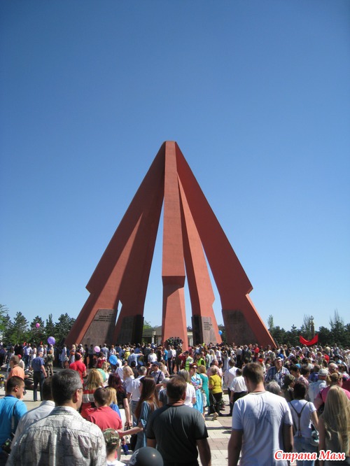 Центральной точкой комплекса является сооружение, представляющее собой пять винтовок, соединенных дулами. Почему пять? По годам: 1941,1942, 1943, 1944, 1945.