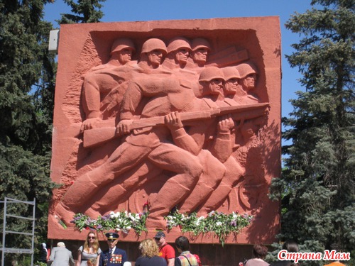 А есть и такие тематические панно, к которым тоже возлагают цветы: