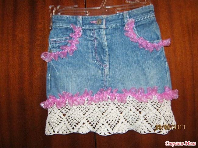 Где-то у Оксаны Вольвач (если не ошибаюсь) была юбочка из джинса с вязанной рюшей