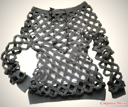 Доброго всем вечера! Дочка попросила вот такую кофточку ей связать, а я не могу сообразить откуда ее начинать, снизу или сверху? Как рукава вязать?
