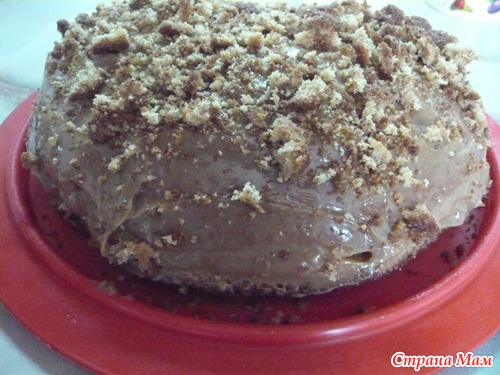 Коржи промазать варенной сгущенкой, сверху обмазать вареной сгущенкой и посыпать крошкой.