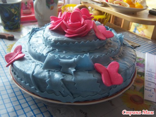 Вот наконец-то и я дебютировала с мастикой... Понасмотрелась тут на красотищу всякую и решилась... Вот доченьке на 2 года и сделала...