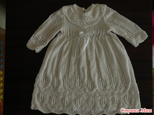 Всем здравствуйте! Как и обещала, показываю платье для крестин, которое вязала спицами. По описанию из интернета платье для девочки ДО 6 месяцев, хотя судя по выкройке и на деле получается на рост 80-85 см минимум. Это оригинал.