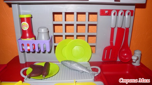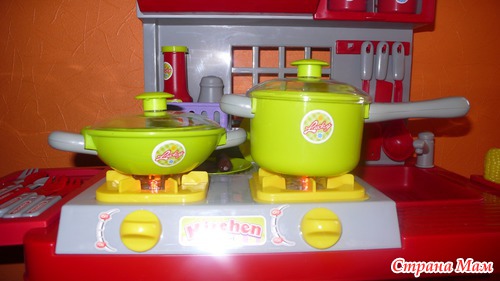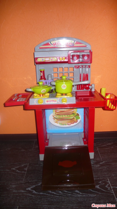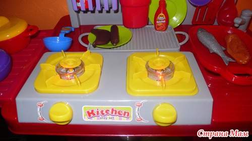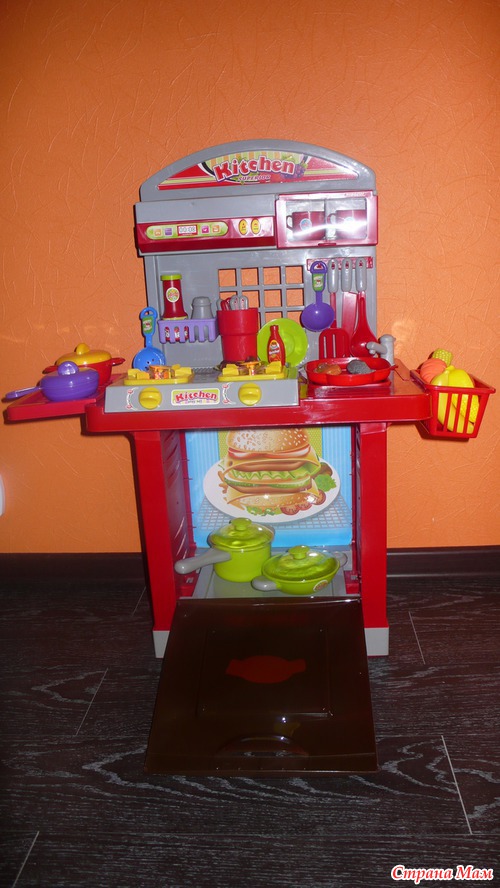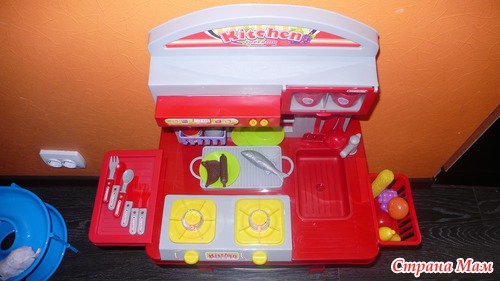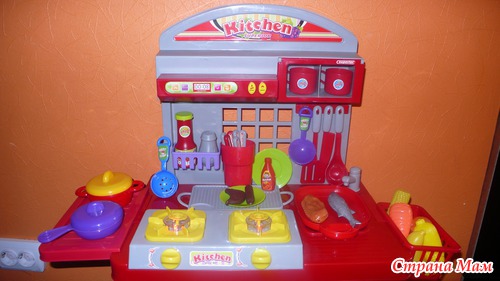 А ещё у моего мальчика появилась своя "кухня". Любит сын принимать участие в приготовлении еды. У него был маленький кухонный наборчик, думала, не долго он будет ему интересен, но вот уже долгое время он ежедневно, хоть 10 минут, играет в "повара" и по сему, я решилась на игровой набор "Кухня":
