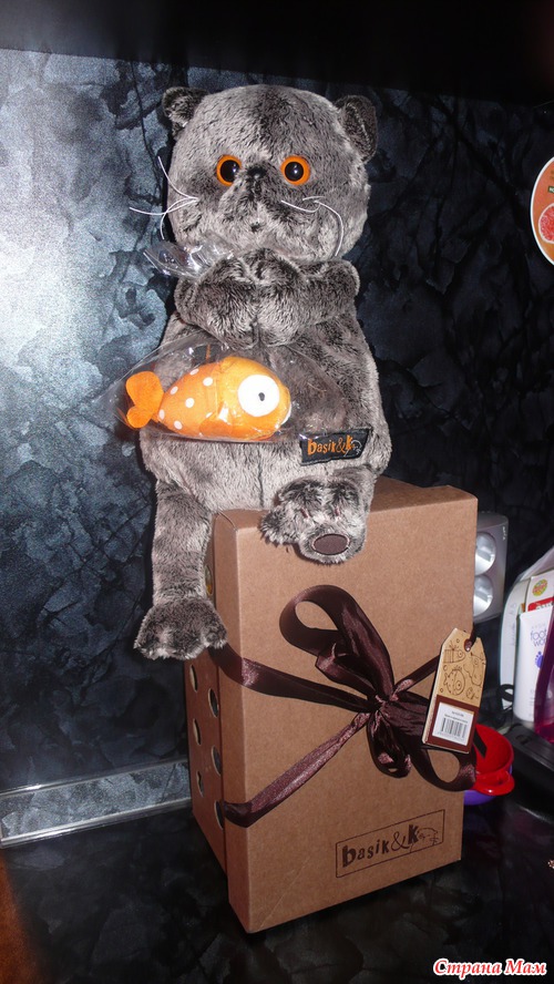 Басик приехал к нам с карасиком в коробочке перевязанной бантом:
