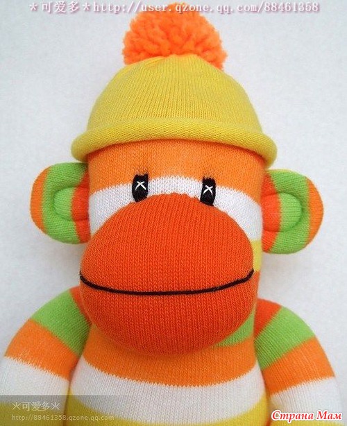 Размеры носков должны быть большими, самыми большими, какие только получится найти. От цветов носка будут зависеть и цвета готовой обезьянки.