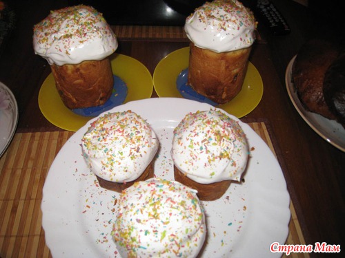 В период выпекания куличей, искала вариант для их покрытия, т. к. сахарную глазурь я забыла приобрести, решила старым способом сделать глазурь: Белки плюс сахарная пудра, но наткнулась на вот такой рецепт (http://www.povarenok.ru/recipes/show/64959/), решила попробовать и не пожалела. Я изменила пропорции, т. к. у меня остались 4 белка: