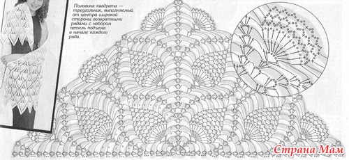 Девочки, помогите! Вязальщица я совсем не опытная... начала вязать косынку по этой схеме, а теперь не знаю, как закончить, чтобы получились такие же уголки, как на картинке...