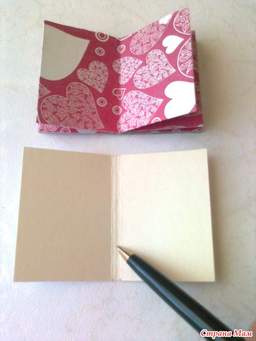Делаем обложку из картона. Обложку делаем на два миллиметра больше книжечки. Бигуем бортик. Вместо биговки использую не пишущую авторучку.
