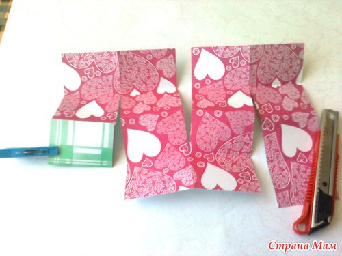 Теперь сделаем надрезы, обозначенные нитками. Резать надо канцелярским ножом.