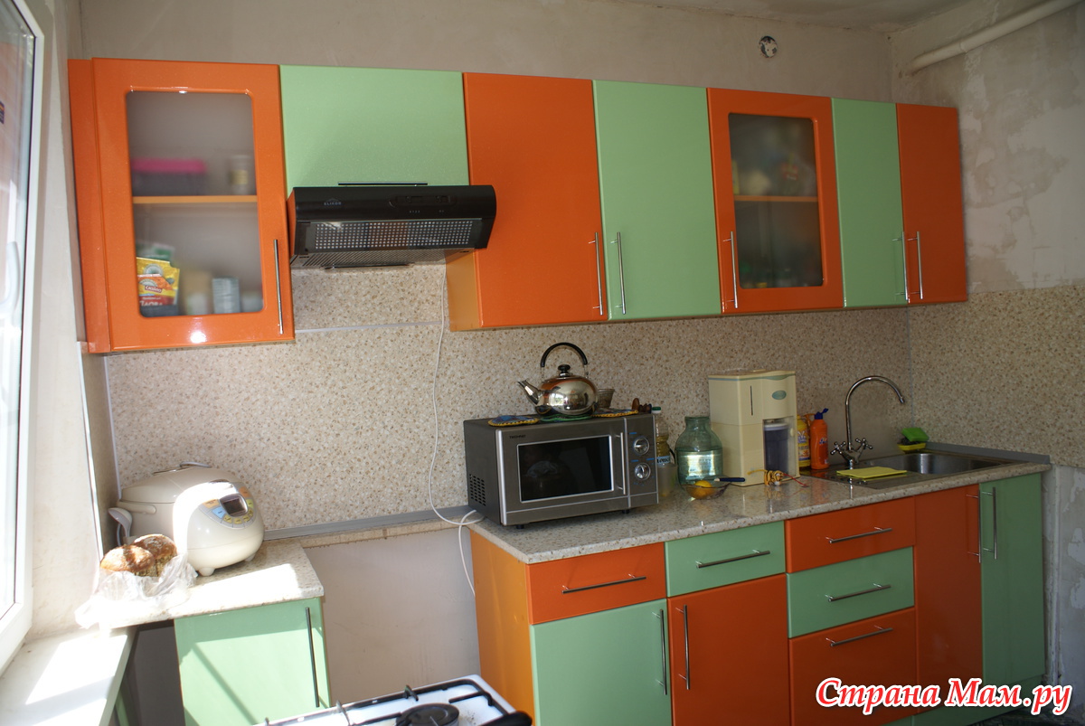 цвет выбирали с братом, очень смело получилось! монтажник сказал, что таких ярких кухонь и не устанавливал, за свои 5 лет работы!!