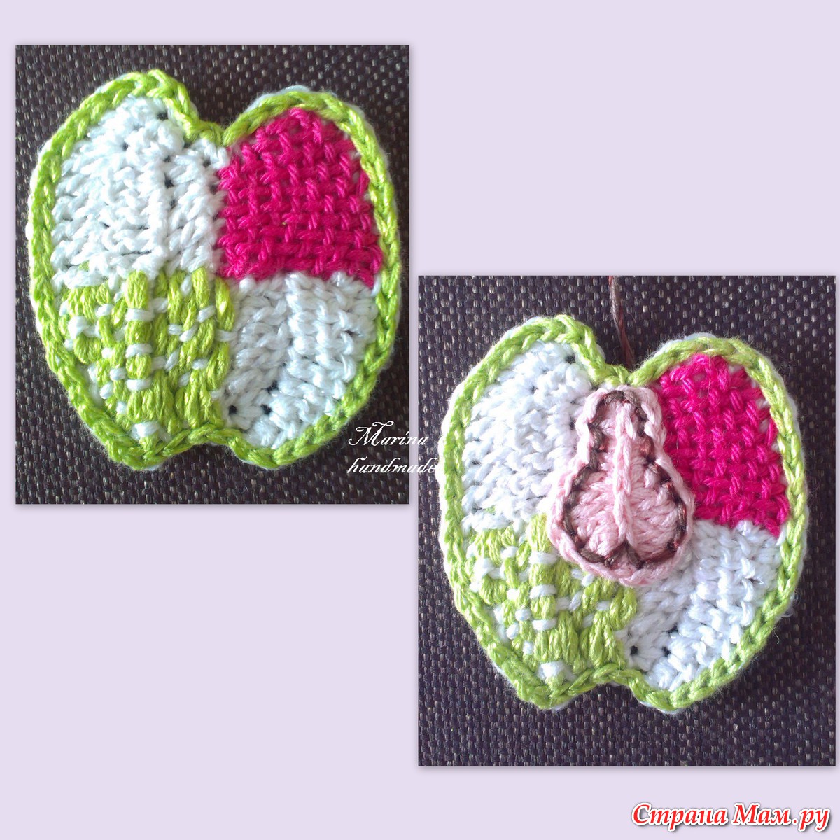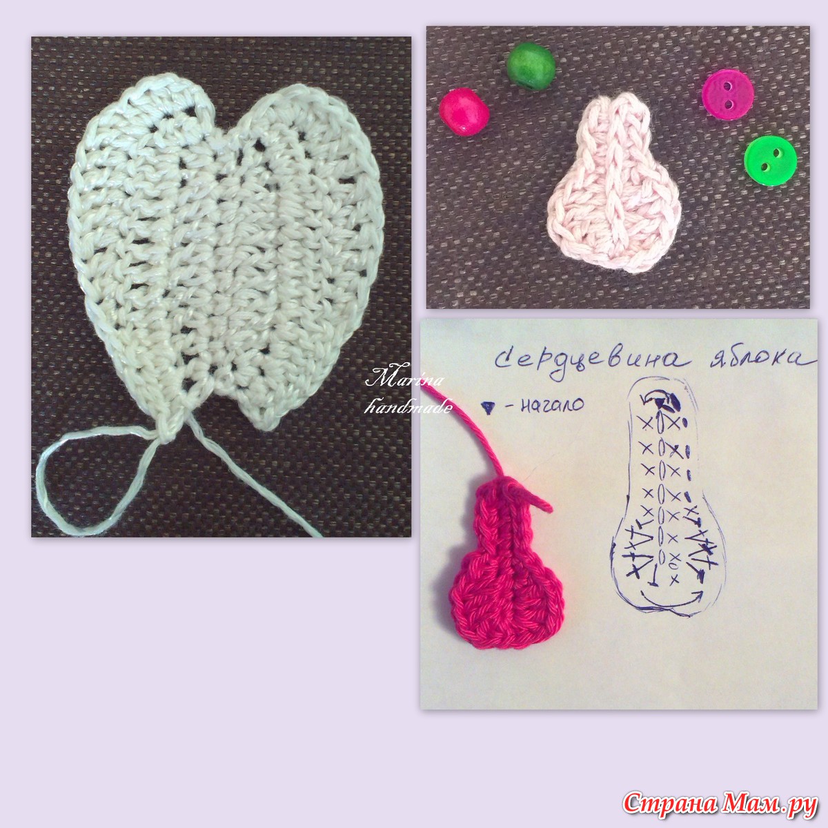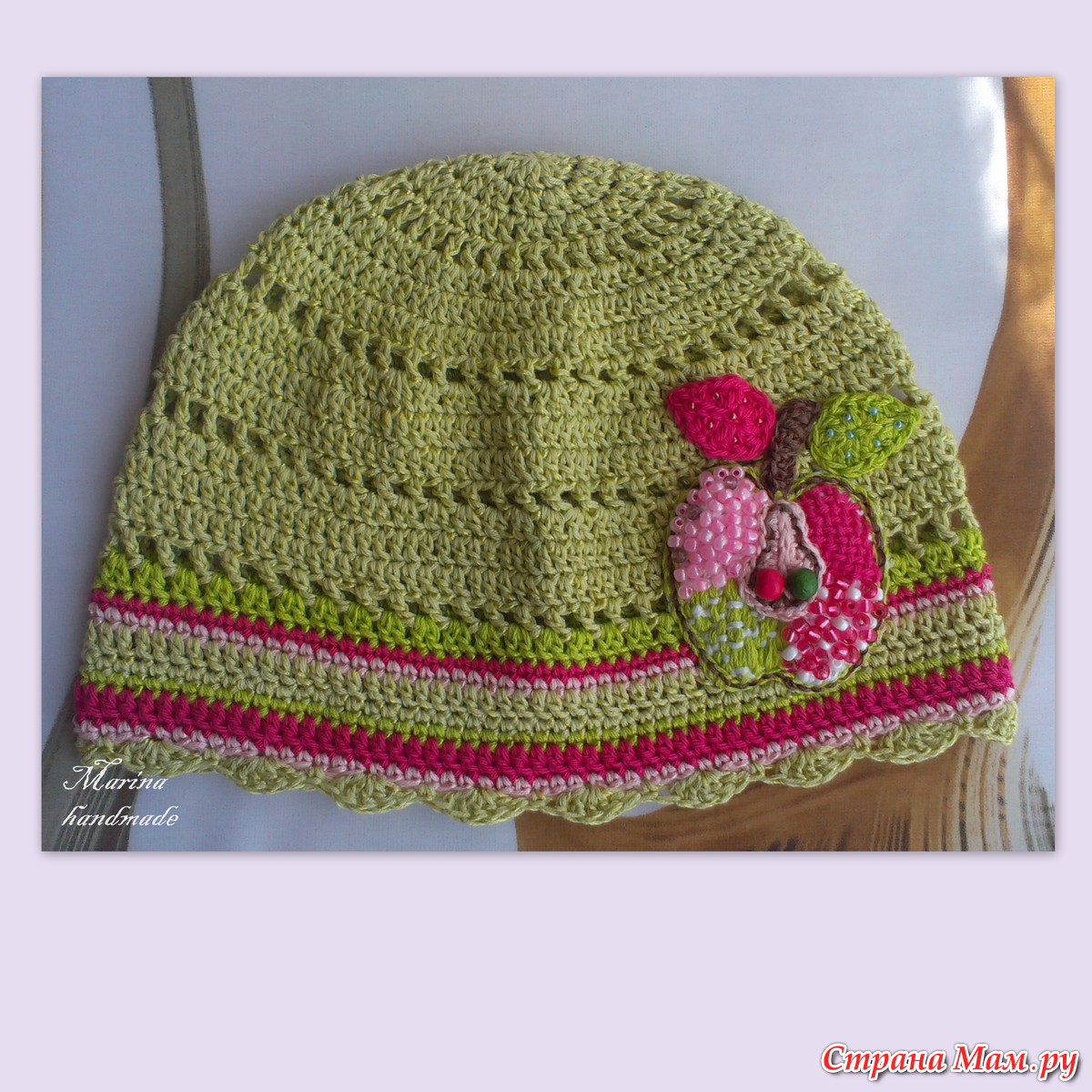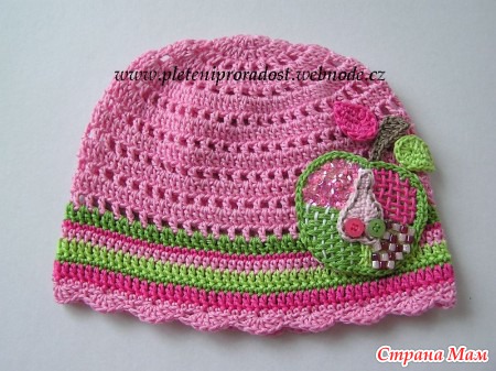 Здравствуйте, страномамочки! Все мы вдохновляемся работами известных мастериц-дизайнеров, в том числе и Вендулки Мадерска, и пытаемся связать такую красоту своим чадам. И я не исключение, вязала шапочки и с девочками, и с цветами. А на этот раз связала своей милашке шапочку с аппликацией "яблоко". Саму шапочку вязать не сложно, мы с вами это проделывали не один раз, хоть с дырочками, хоть без них. А вот такое яблоко я попыталась разобрать по шагам и делюсь с вами. мои дорогие рукодельницы!!!