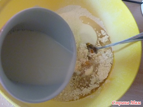 Вливаю теплое молоко размешиваю