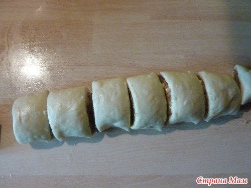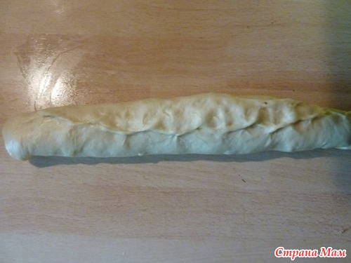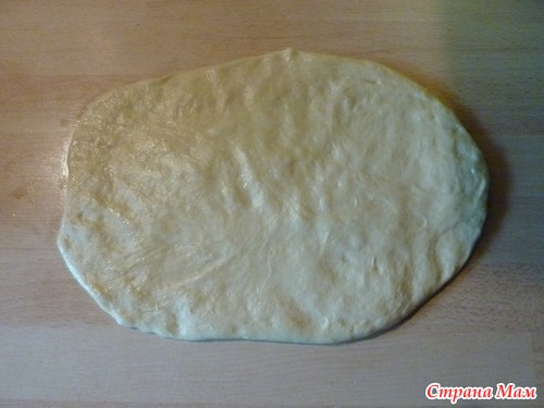 и сразу начинаю разделывать! Для улиток раскатать на столе руками овал (тесто очень послушное)