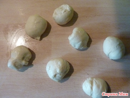Для плюшек: Кусочки теста подкатать в шарики и оставить на ~5 минут.