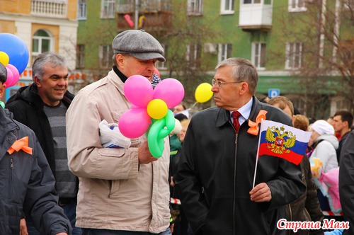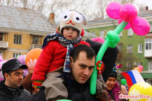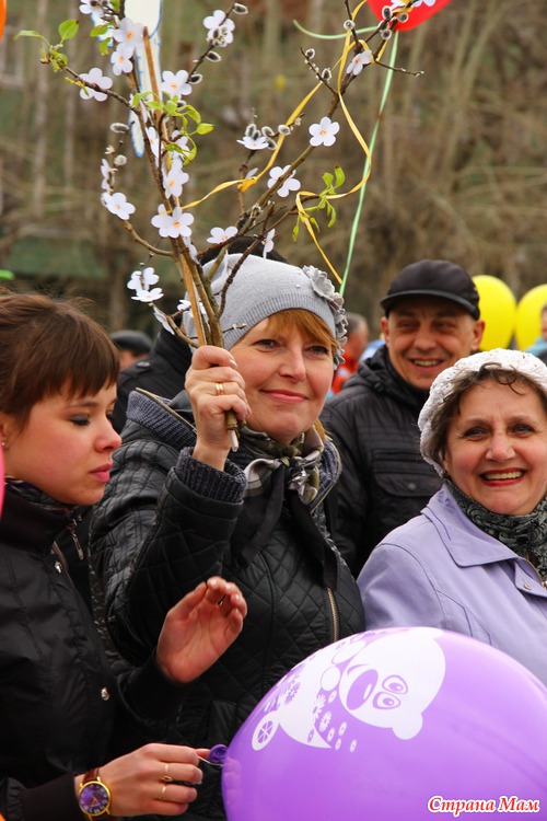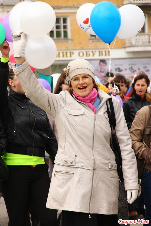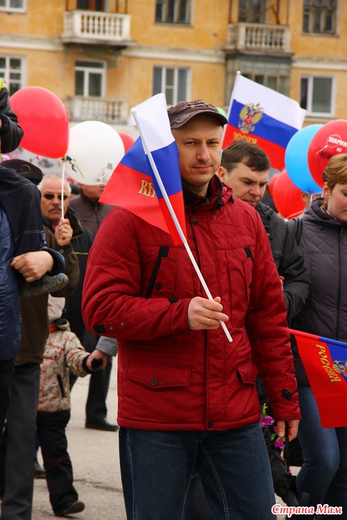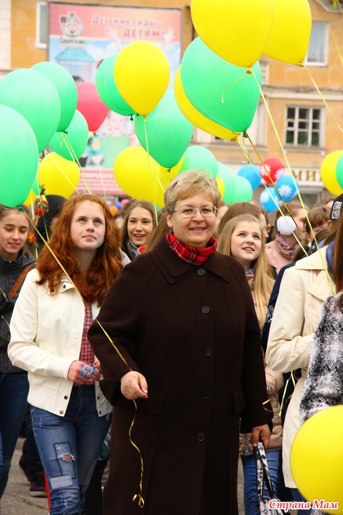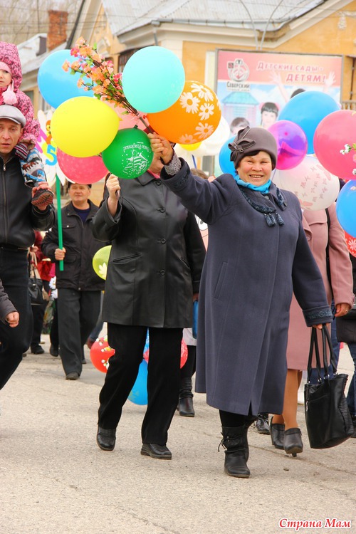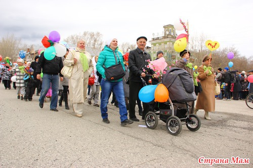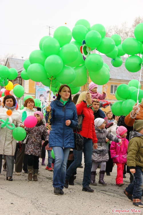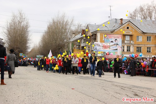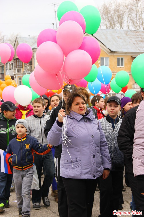 Не знаю как у вас, а у нас каждый год 1 мая проходит демонстрация. Собираются все организации города и идут по улицам. Куча шаров, плакатов, флагов. Идут все от стара до млада.