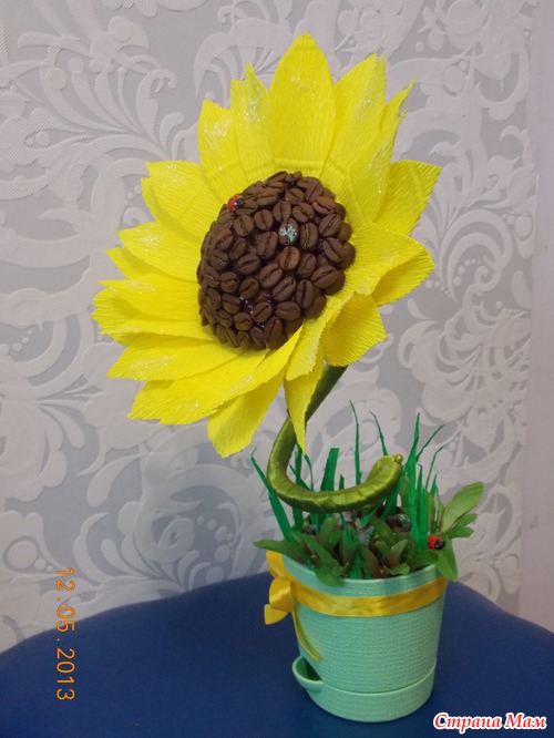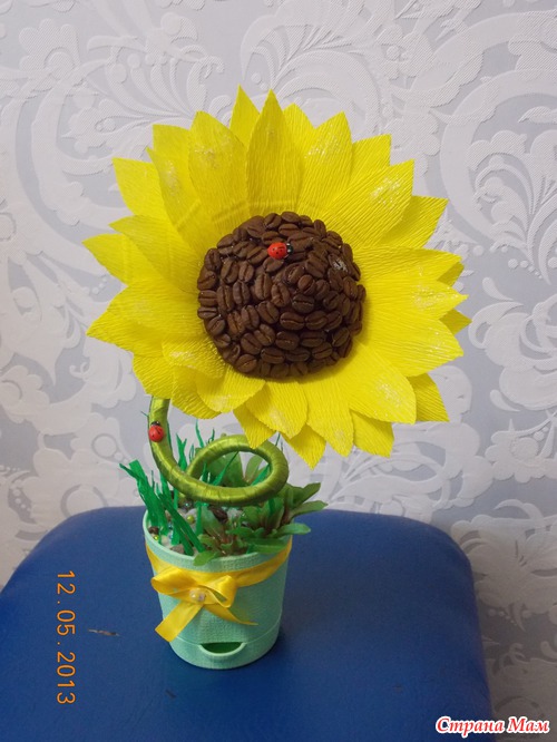 Выходных много, погода не ахти, вот я и решилась на подсолнушек. Долго на них засматривалась, вот, созрела. Правда оформление нижней части получилось скудным