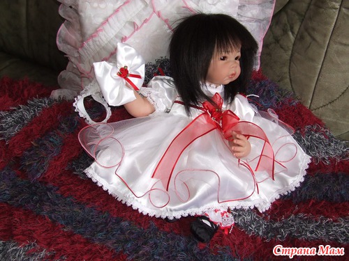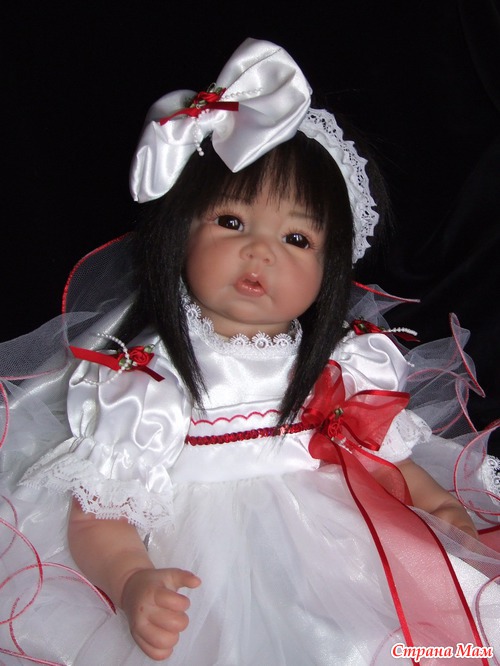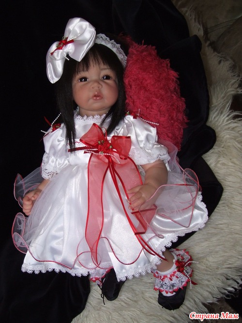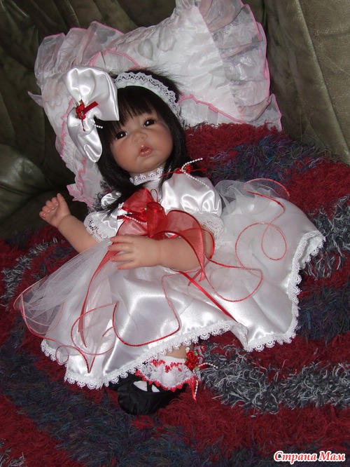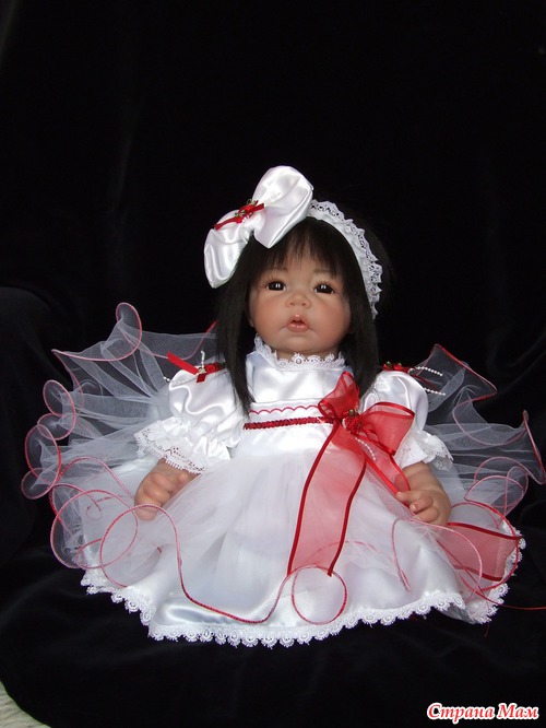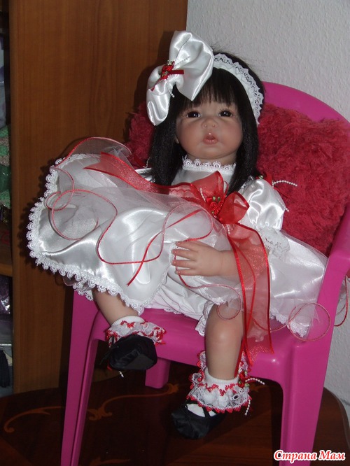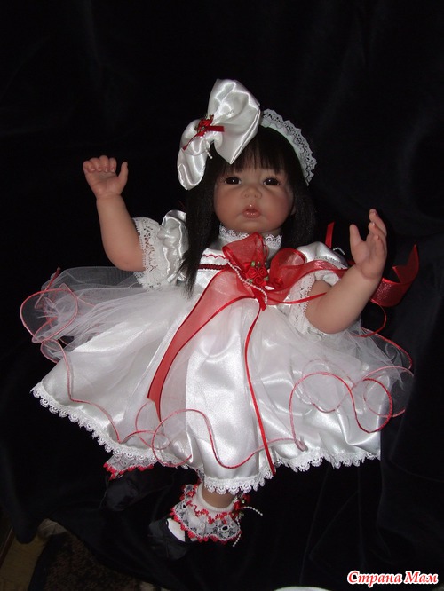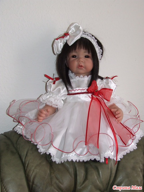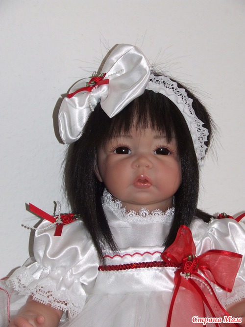 Спасибо. Оливия полностью сделана по заказу. Именно заказчица выбрала и цвет глаз. С волосами вообще получилось не предсказуемо. Они натуральные и жестковатые. Вот при рутинге с направленными уколами иглой получилась такая причёсочка. Я только чёлку резала и немного подправила всё остальное. И платье планировалось другое. Но на картинке выбранный наряд смотрелся чудно, а как пришёл то оказался простоват. Так что Оливия получила именно такой нарядный комплектик. Он уже был у нас в гардеробной.