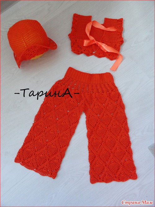 Комплект связан по мотивам моего предыдущего комплекта "Оранжевое чудо". Его я вязала своей дочери 4 лет.