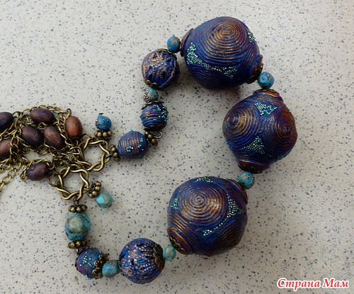Всем огромный привет!!! Сегодня с новыми бусами, без любимых цветочков. Изначально накатала просто синие бусины, довольно крупные.