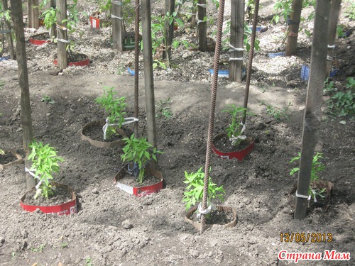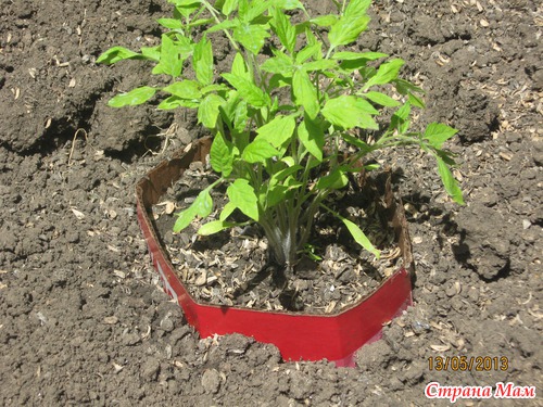 Рассаду помидор я сажаю в картонные стаканы)))) просто оборачиваю картоном-на фотках ниже видно... выкопала ямку... поставила туда картон... насыпала внутрь земли и вокруг картона тоже и хорошо ее утромбовала- чтоб он хорошо и ровно стоял... потом в эту картонную лунку сажаю куст помидор и засыпаю землей... но так чтобы картон немного выступал над землей... медведка-не страшна)))) все что посадили без картона и даже с разной отравой -уже подъедено этой мерзавкой(((( так что для меня это спасение... потом присыпаю корни сверху шелухой семечки-она хорошо держит влагу... помидоры сажаю в шахматном порядке-и им не тесно и больше кустов помещается-они друг другу не мешают... сажаю так уже много лет...