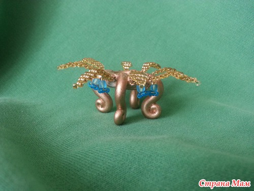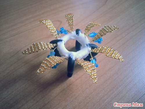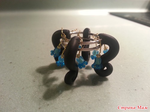 после того, как все остыло, надеваем наши ножки-загогулины на кольцо для ключей. только на половину, чтоб ножки не крутились в разные стороны.