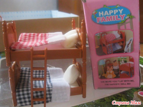 Это двухъярусная кроватка с приставной лесенкой и двумя комплектами постельного белья.