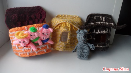 Мой ребенок просто в восторге от этой сказки. Сделали для сыночка домик, сделанный из стола и покрывала, теперь он там сидит и каждый день играет в 3-х поросят, то папа, то мама по очереди играют роль волка.
