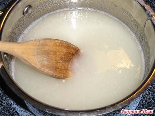 Итак, смесь готова. Включаем плиту на большую мощность, ставим емкость, в которой разогреваем массу, тщательно перемешивая, в течение нескольких минут. Затем уменьшаем огонь, чтобы сахар не сгорел.