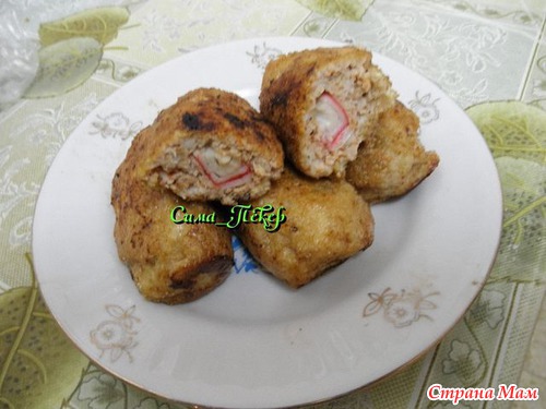 Котлетки-рулетики. Из фарша и крабовых палочек