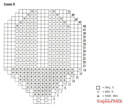 Сборка: Выполнить плечевые швы (участок убавления жгута). Для кармана набрать 5п. и вязать по схеме В. Второй карман вязать так же.