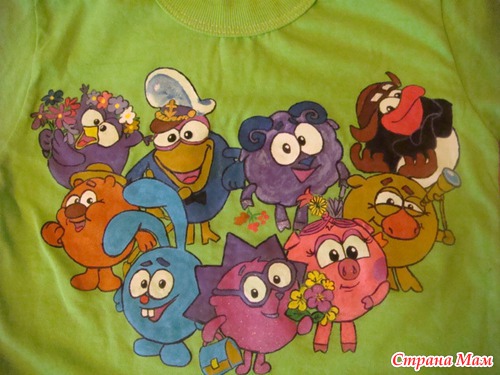 В прошлом году нарисовала племяннику Кроша, носит и спит в ней, одна проблемка племянничек подрос немножко)) требует одевать только смешариков. Вот нарисовала новых-всех на одной