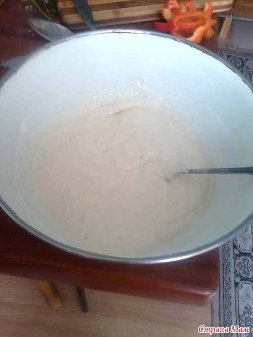 Итак... Месим-месим... Ах да... одновременно мне приспичило сделать еще и пирог по рецепту Ксюкс (ну тот самый, в котором вся начинка с тестом смешивается