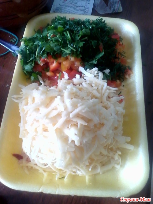 Итак... Месим-месим... Ах да... одновременно мне приспичило сделать еще и пирог по рецепту Ксюкс (ну тот самый, в котором вся начинка с тестом смешивается