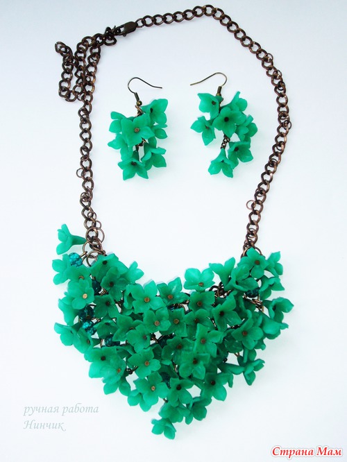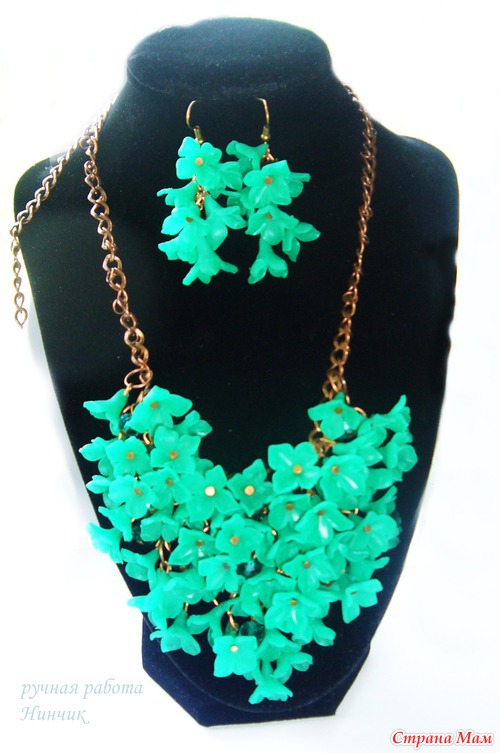 добавила немного бусин стеклянных, а их среди цветочков почти не видно