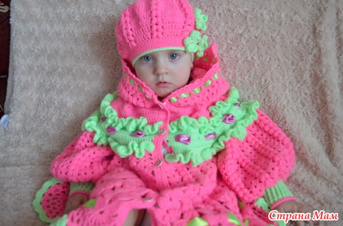 Здравствуйте страномамочки! Вот наконец свое пальто закончила. Нитки 100% акрил, цвета очень ядовитые, но фотик хоть и хороший, а что-то цвет не передал