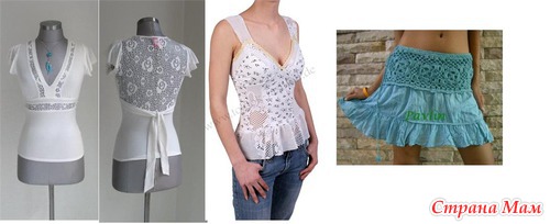 Есть у меня такие в хотелках. Идеи потрясающие, надо только как-то встряхнуть себя и это сделать! Перерыть шкаф, найти старые вещички, вышедшие из оборота и попробовать изобразить что-то новое! Вот дочка залезла на даче в шкаф, вытряхнула оттуда пару маек, нарезала спину соломкой (тоже идея из интернета) и мы переплели их косицами. Вещички вышли - хоть куда!