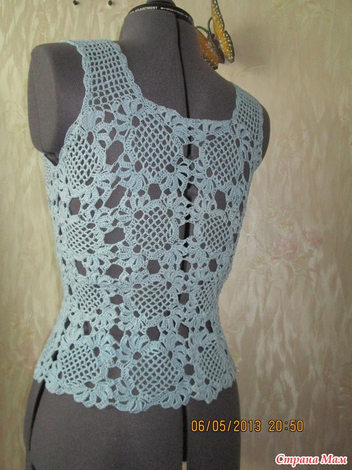 Топик из квадратных мотивов, которые соединяются в процессе выполнения последнего ряда.