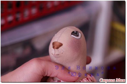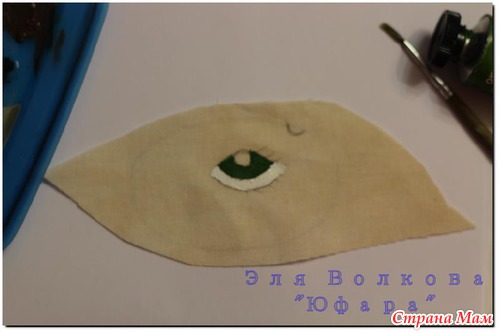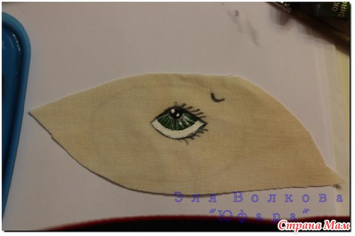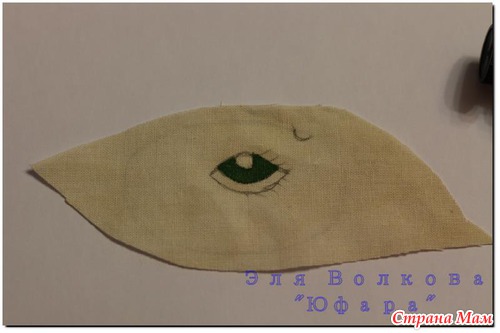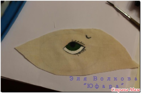 просто к тому времени я сама уже все глазки расписала и не запечатлела этот этап... вот и решила для наглядности это сделать просто на куске бязи акриловыми красками...