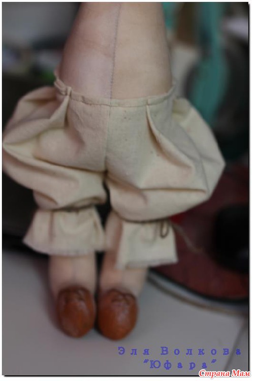низ брючин обвязываем бичевкой, немного подтягиваем, чтоб были складки и усе готово.